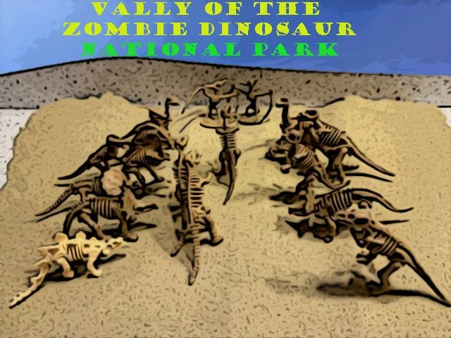 Ok. I know you’ve probably heard someone complaining about it before: they aren’t really zombies. More like Walking Skeletons. But the park also isn’t in a true valley, it’s a basin in central New Jersey, but nobody complains about that, or the fact that not all of the creatures are technically dinosaurs. Honestly, I think that the mistake is for the best. Not the naming issue. The fact that they aren’t zombies. You don’t have to worry about them coming for your brains. Anyway, the park was only recently renamed when it became a National Park in the 1970’s and might have gotten the name from the popularity of movies such as the Night of the Living Dead. Formerly, it was known Monument of the Walking Bones. Which also has it’s own naming problems, because fossils aren’t usually bones, instead their mineralized replacement. Ok. Enough quibbles. It’s safe to say that I love this park. Museums are grand, but most of those fossils are static. Many are replacements, which is fine, scientist go to great length to restore and replicate a limited resource so that people around the world can learn more about them, but there is nothing like seeing the remains of creatures from tens, and even hundreds, of millions of years ago, move around, interact, and even perform rituals which go back to the time of the dinosaurs. Any time of day you visit, you can see the roughly 30-35 assorted skeletons move about as though repeating the same actions they would have during life. Walking, grazing (on empty sand,) and even hunting. Especially popular with most visitors is the daily stegosaurus hunt. Although, in life, stegosaurus and T-rex were separated by roughly a hundred million years, these two seem to delight in entertaining visitors with the show, and no one is hurt because neither have flesh. Scientists still can’t decide what caused such an unnatural circumstance. Whether it was some arcane saurian necromancer, a quirk of the local soils, (which are said to glow in the light of a new moon,) or a design yet understood. Maybe you can figure out if you visit.